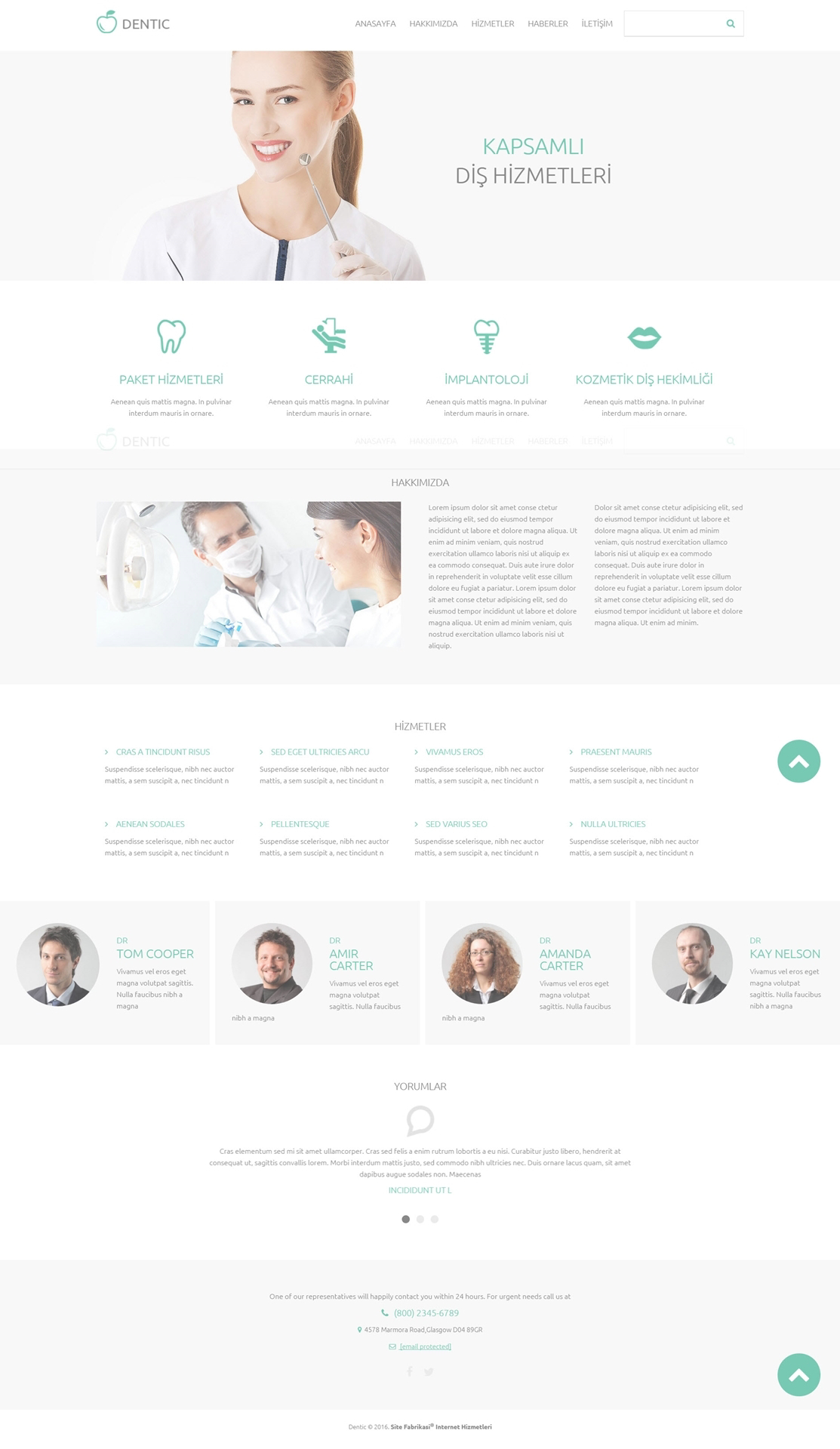 Dişçilerin amaçlarına uygun olarak hazırlanmış bu websitede; dişçilik faaliyetlerinize, hasta memnuniyetinize dair bir çok şeye yer verebilirsiniz.